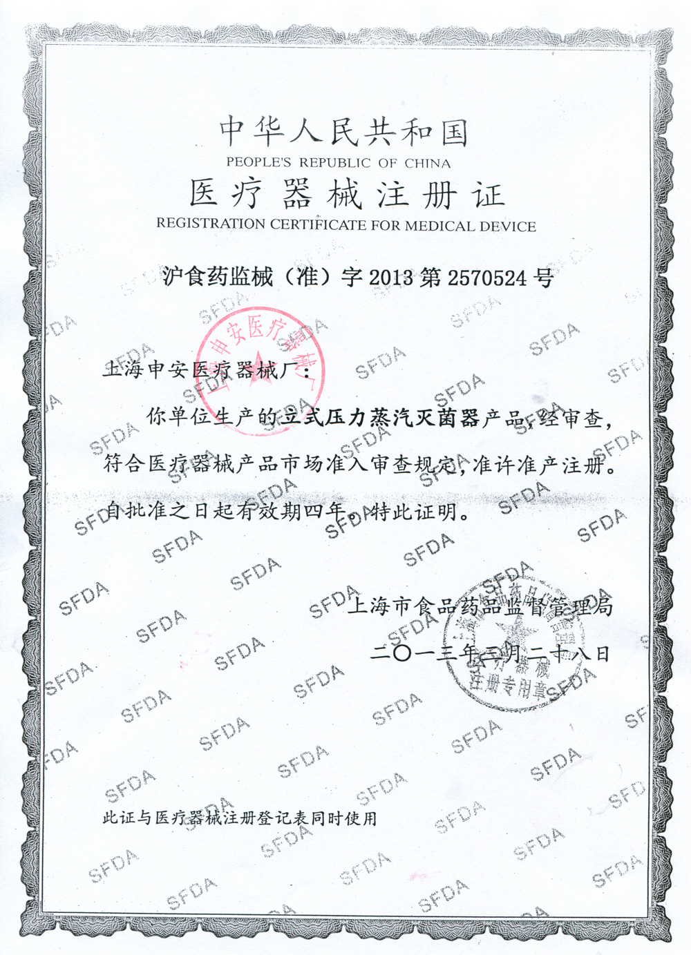 滬食藥監械(準)字2013第2570524號